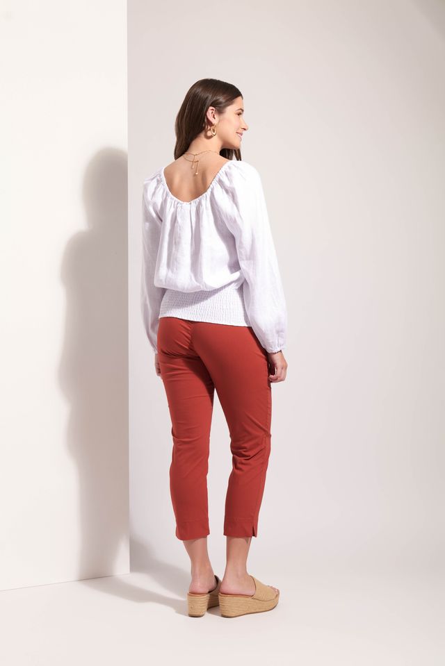 Effortless elegance meets versatile style with this cotton and linen blend top. The elasticated neckline allows you to wear it on or off the shoulder for maximum styling flexibility. Full sleeves with elasticated cuffs provide a polished finish, while the deep elasticated waist creates a flattering silhouette. Cut short for a modern, contemporary look that transitions seamlessly from day to night.