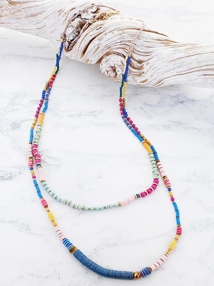 Elevate your accessory game with the SUZIE BLUE Triple Strand Beaded Bracelet. This vibrant piece features three interwoven strands adorned with an eclectic mix of multicoloured beads, each one carefully selected to create a dynamic, eye-catching design. The friendship-style fastening makes it easy to slip on and adjust for the perfect fit, while the playful bead combination ensures it pairs beautifully with any outfit. Complete the look with the matching necklace to create a coordinated set that celebrates colour and individuality. Perfect for layering or wearing solo, this bracelet brings a pop of personality to your everyday style.