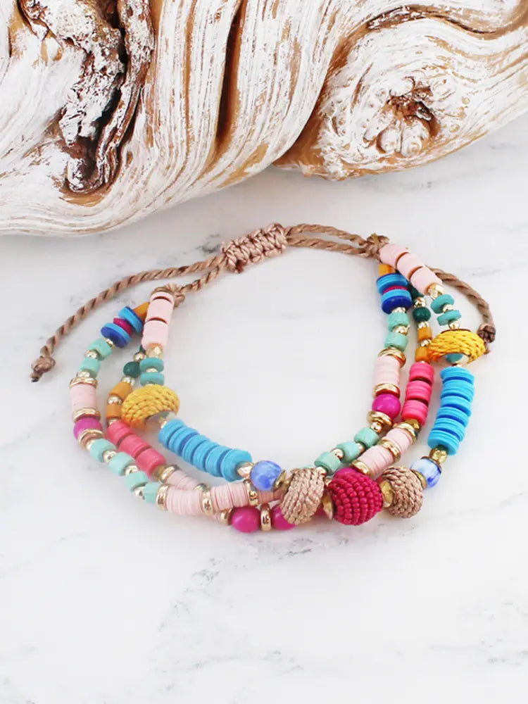 SUZIE BLUE - Triple Strand Beaded Bracelet - Multicolour AY1606