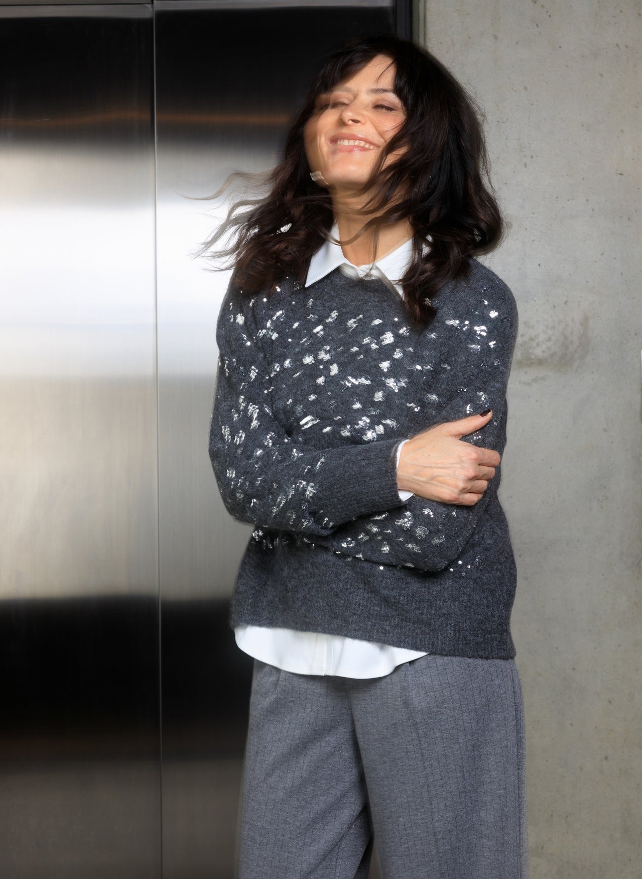 This jumper has a lovely soft feel thanks to the mix of polyester, PAN, nylon, wool and elastane. Sequins add an elegant shine to the casual cut with a comfortable fit. A nice balance between relaxed comfort and a festive detail for your wardrobe.