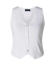 This sleeveless knitted waistcoat is your new go-to for warmer days. Featuring pearl buttons and an elegant V-neckline, it brings subtle flair to your everyday outfits